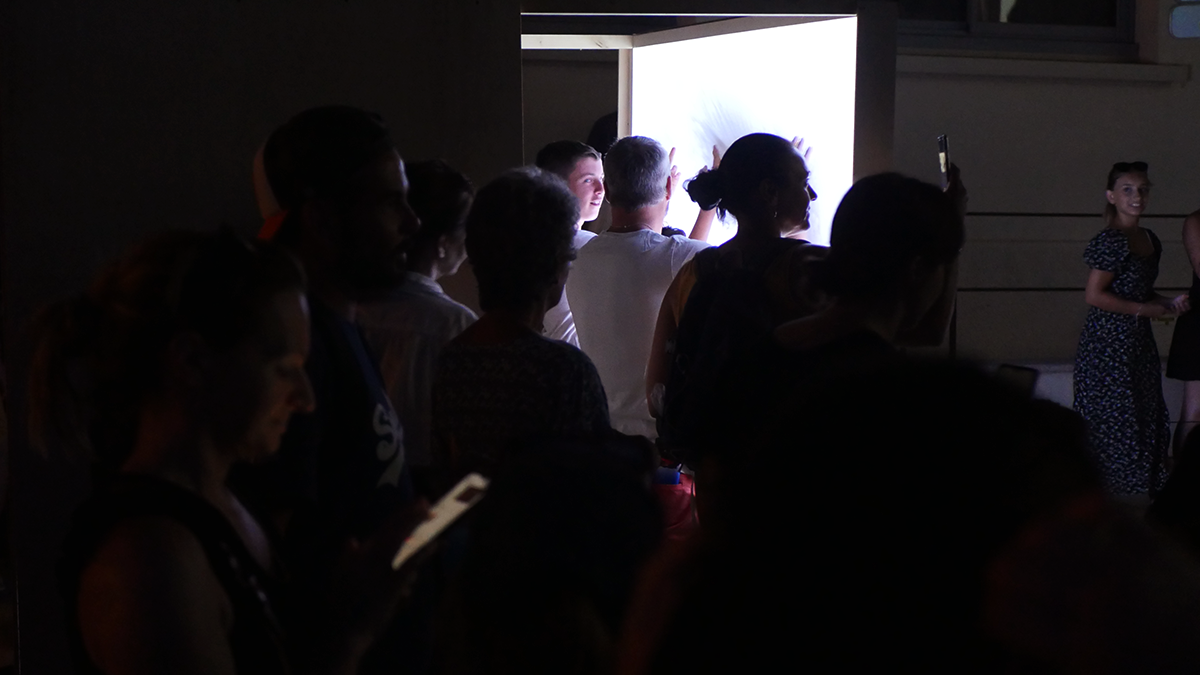 Le dispositif se présente sous la forme d’un écran interactif à l’intérieur d’une cabine ouverte au sein de laquelle le ou les participants sont libres d’entrer et de sortir.