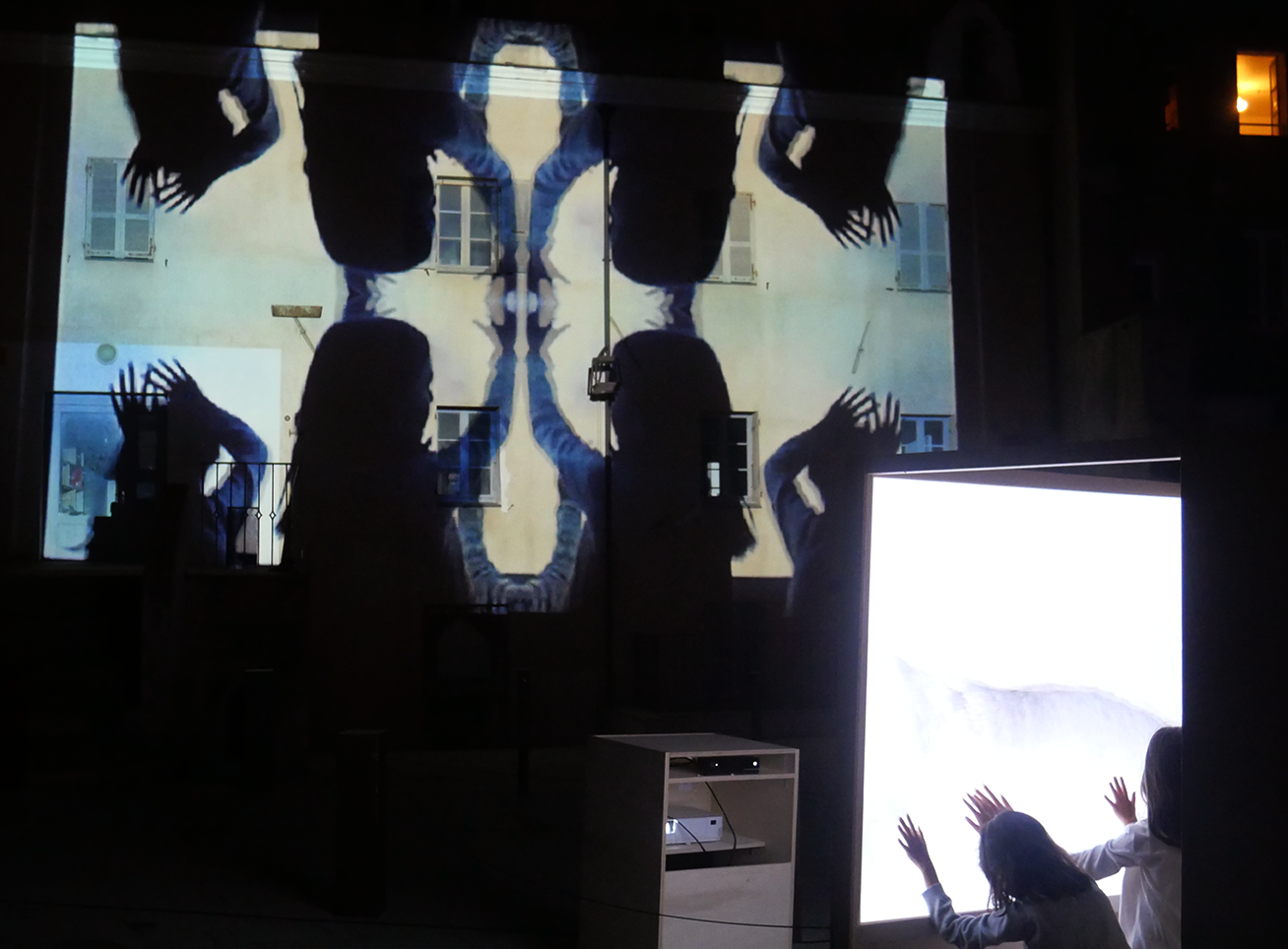 Inspired by shadow theater, the installation invites the spectator to participate by putting at his disposal an audiovisual instrument that is both playful and intuitive.